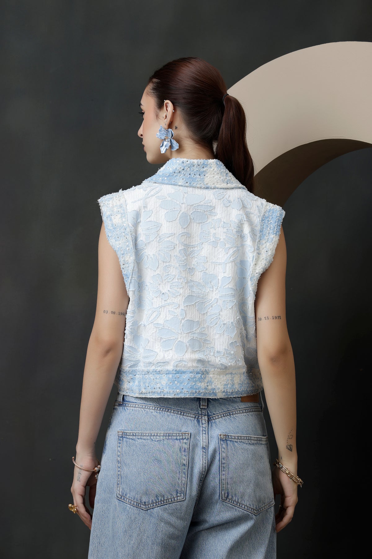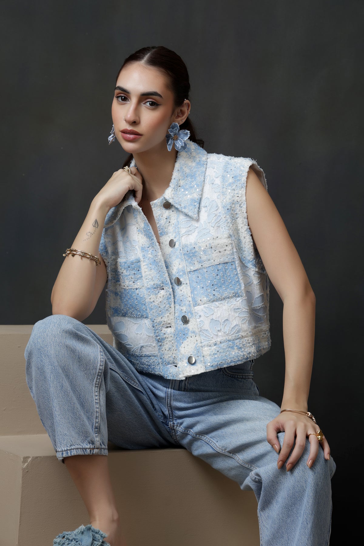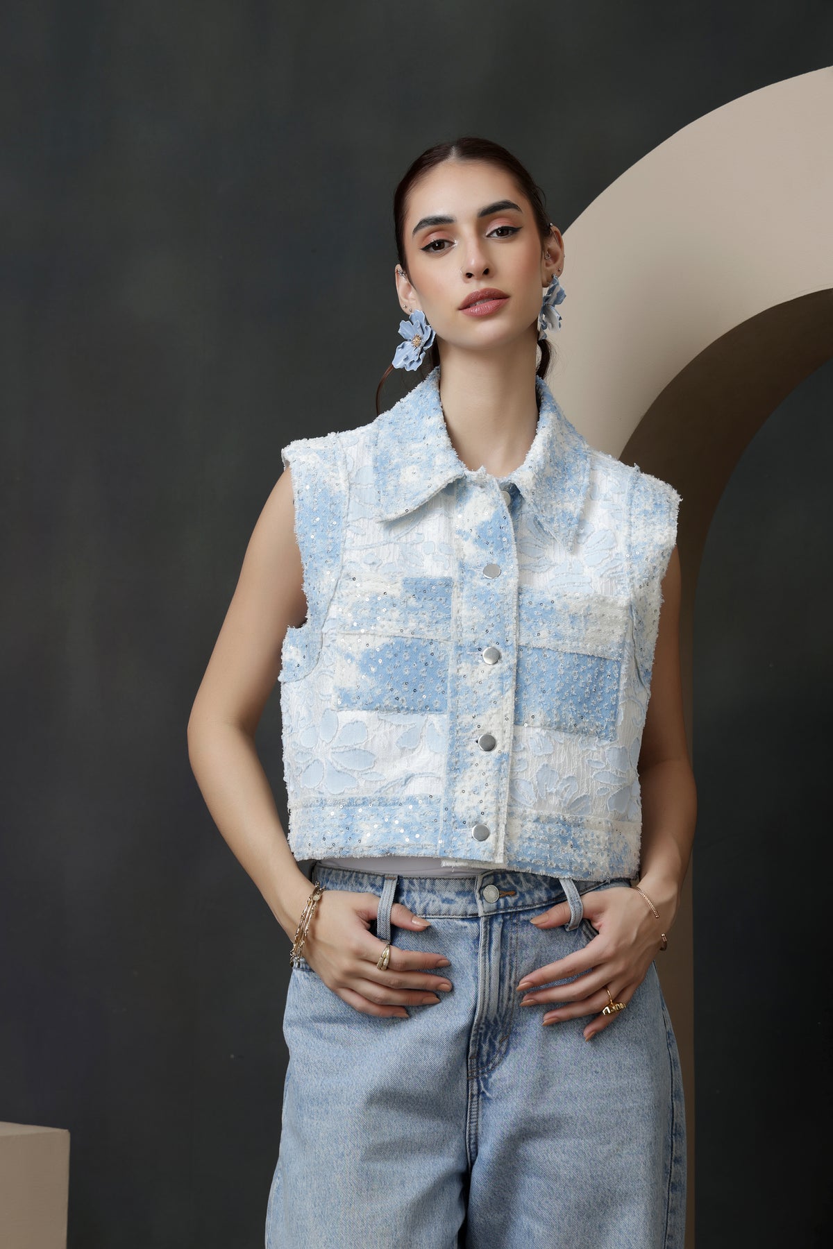 The Ray Shirt is a seamless symphony of design and detail. A crisp cotton top with delicate pintucks flows effortlessly into rich dark denim, while intricate lace defines the middle—creating a shirt that’s modern, feminine, and endlessly versatile. Pintuck detailing at the top for refined texture Denim base with black lace highlights for contrast